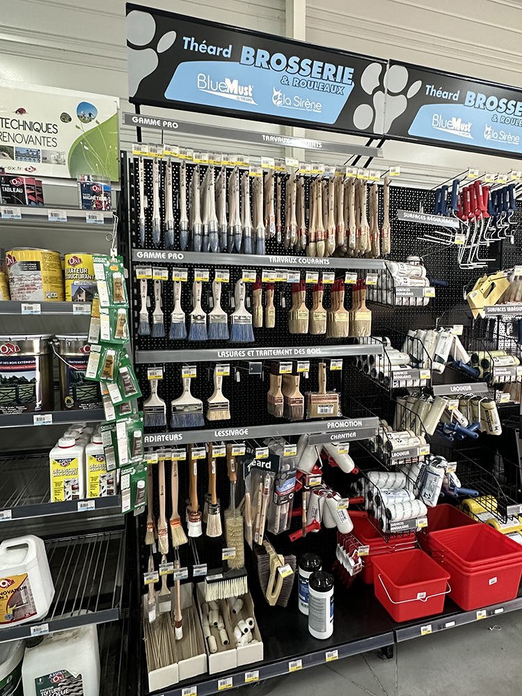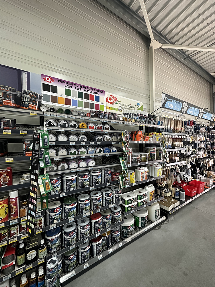 Retrouvez un large choix de peinture pour toute la maison, ainsi que l’entretien de vos bois (lasure, vitrificateur, vernis) et peinture façade. Equipez-vous du matériel nécessaire pour réaliser vos envies : pinceaux, rouleaux, seaux, perches, scotch et bâches. Vous êtes à la recherche de la couleur parfaite ? Nous pouvons réaliser toutes vos envies. En quelques minutes nous teintons la peinture adaptée à votre support (mur, plafond, fer, bois, façade)